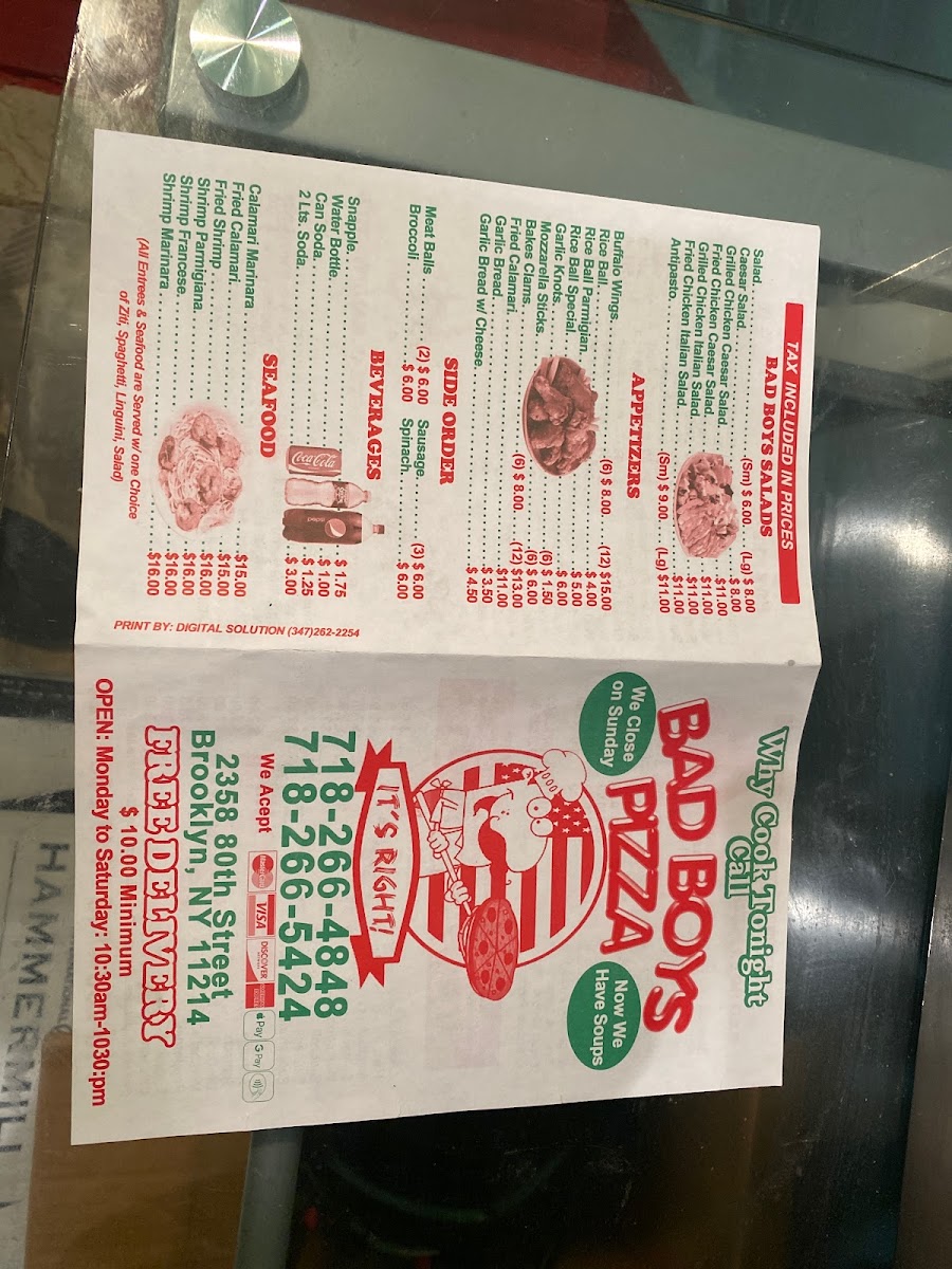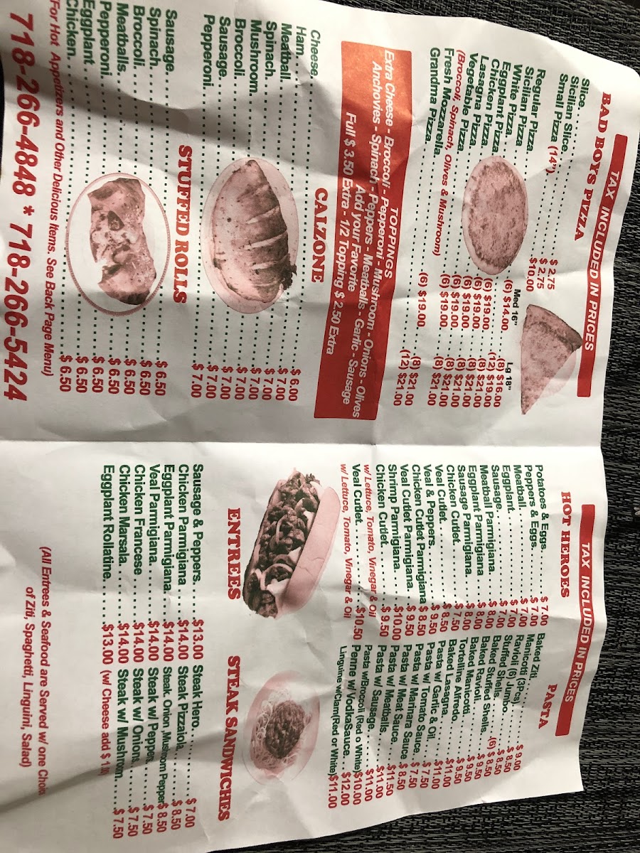 The menu at Bad Boys Pizza offers a straightforward and inviting selection of classic Italian-American favorites. Whether you’re stopping by for a quick slice or ordering a full meal delivery, the focus remains on familiar, comforting dishes that suit casual dining and easygoing gatherings.